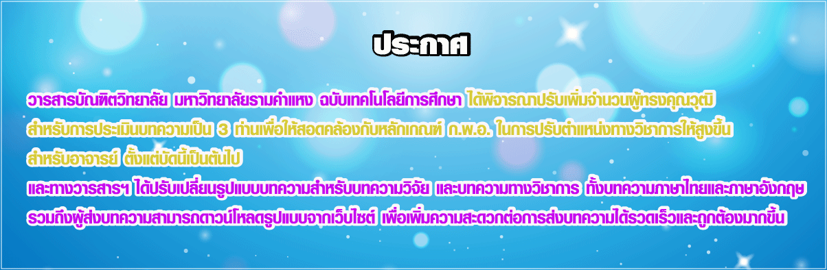 กองบรรณาธิการ วารสารบัณฑิตวิทยาลัย มหาวิทยาลัยรามคำแหง ฉบับเทคโนโลยีการศึกษา